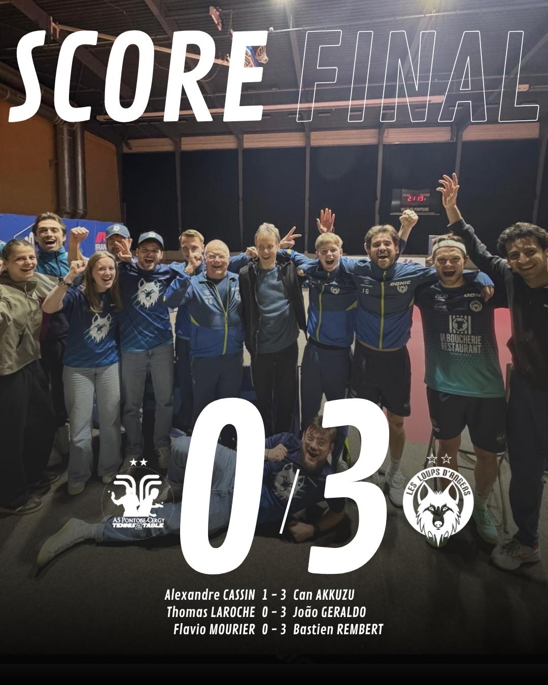Soirée parfaite pour nos Loups qui s’imposent avec autorité face à une équipe de Cergy diminuée par l’absence de son leader